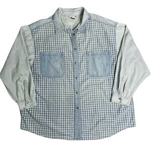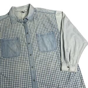 Vintage Button Front Blue Gingham Plaid Pin Stripe Long Sleeve Shirt Gitano 3X