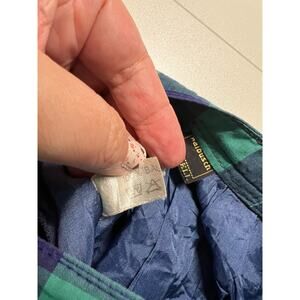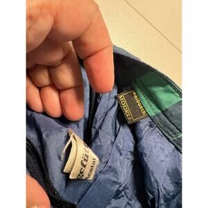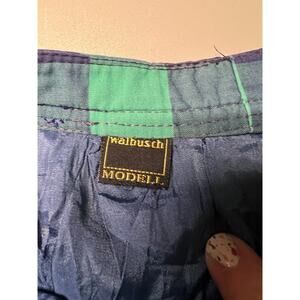 Vintage Button Front Walbusch Plaid A-line midi skirt blue green pockets Size 8