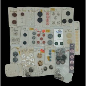 This is a variety of buttons in a metal duck designed tin. The tin is from the 80's. I believe that the buttons are all, or most, older than that and most likely from the 60's and 70's. There are metal, leather, and mostly types of plastic. There are 299 total button with the majority still being on the cards. Most cards are full, a few are not. Please view the photos and I can provide more through messaging if needed. The tin does have some bumps and bruises. Some of the cards that the buttons are on have crinkles and folds. The buttons look great though!