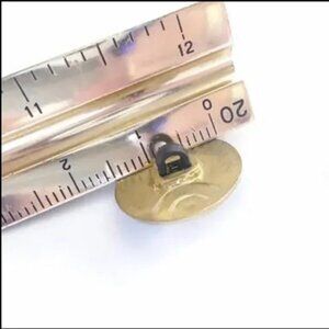 They look older than they are. They came off of an 80s blazer (it had a LOT of buttons) that was otherwise destroyed and completely useless to sell. But these buttons are great. They're lightweight and they have dimension. They are shank buttons. The black "enamel" is plastic. They show tarnish on the other side but the fronts are flawless. Ruler is set to give idea of size. ....and that is that.