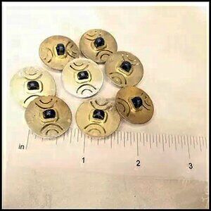 Vintage Button Set, 80s Black & Goldtone Buttons Lot of 8