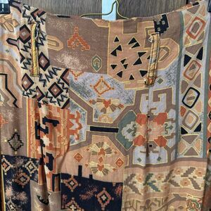 This vintage button skirt set from the 1970s features a sleeveless top and skirt made from rayon material in a multi-color design. The set is from the brand Expose and is in excellent condition. Perfect for a size small/medium woman, this retro outfit was made in the USA and is a stylish addition to any vintage wardrobe.