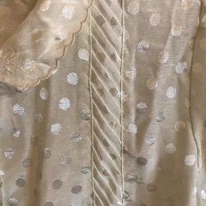 Vintage satin top with cinched sleeves and scalloped collar. Brothers brand- Vintage size 9 - fits like a small/medium.