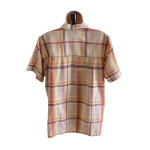 Vintage Button Up Plaid Blouse Lightweight Womens Shirt Size 14 16
