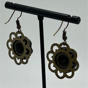 Vintage Button-Inspired Silver-Tone Dangle Earrings With Flower Design Retro