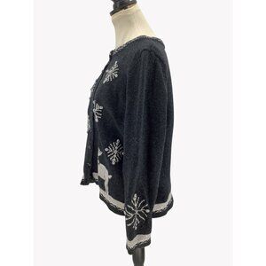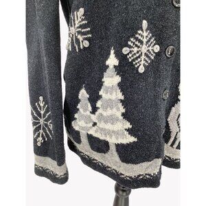 Vintage Button-Up Gray Wool Cardigan Ugly Christmas Sweater Womens Size M