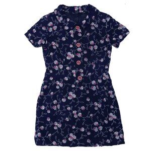 Vintage Buttoned Embroidered Fabric Mini Dress- 1960's Gorgeous Mod Style