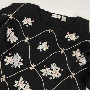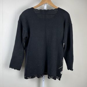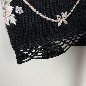 Vintage By Design Floral Crewel Embroidered Black Pullover Sweater Womens Medium