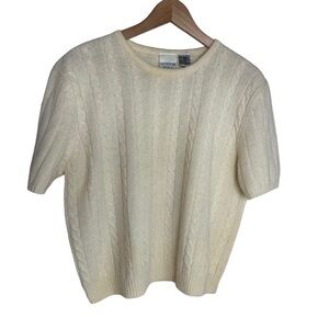 Vintage By Katherine Bishop Wool & Angora Blend Cable Knit Short Sleeve Sweater