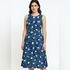 Vintage Byer Studio Sleeveless Floral Blue Maxi Dress Yellow Flowers Crewneck