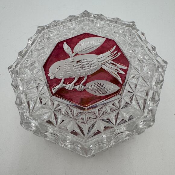 Vintage Byrdes Collection Octagon 4" Trinket Box by Hofbauer 24% Lead Crystal