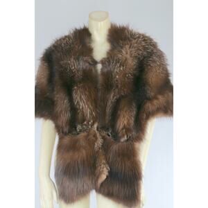Vintage C. Henning Brown Raccoon Fur Overcoat Cape Wrap Scarf Luxury Real Fur