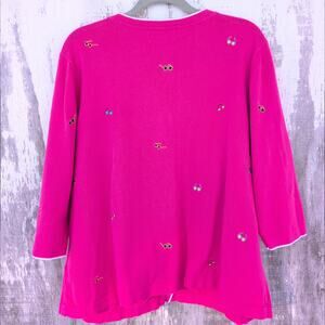 Vintage C. J. Banks Cardigan Beachy GrannyCore GrandmaBeach Hot Pink Women's 2X