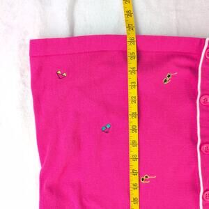 Vintage C. J. Banks 3/4 Sleeve Cardigan Beachy GrannyCore GrandmaBeach Hot Pink Women's 2X This vibrant hot pink cardigan is a quintessential piece for embracing a playful, vacation aesthetic. The bright fuchsia color instantly catches the eye, creating a mood of pure, cheerful fun. It features an array of charming, scattered embroidered sunglasses in various colors and styles—from groovy star-shaped frames to classic aviators—lending a delightful "Grandma Goes to the Beach" or "Poolside Party" vibe. The contrast of the white trim along the V-neck, button placket, and cuffs brightens the look, while the 3/4 sleeves offer a comfortable, airy feel, perfect for layering during warmer months or cool evenings. Made by C.J. Banks in a women's 2X, the relaxed fit promises a cozy and easy-to-wear silhouette.