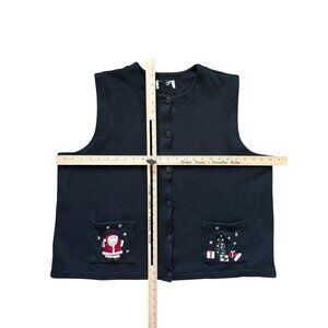 Vintage C J Banks Sweater Vest Womens Large Black Christmas Santa Tree 2000s