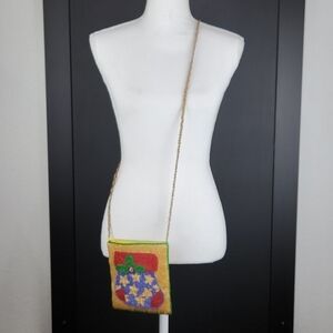 Vintage C Marie Style Glass Beaded Cross Body Christmas Purse