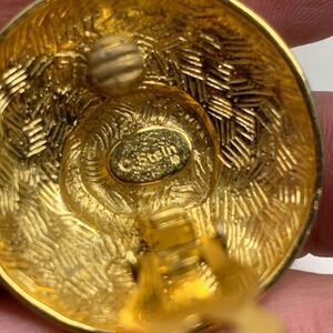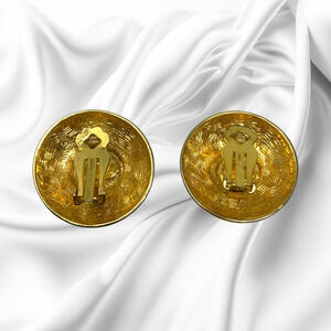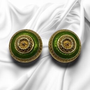 Vintage C. Stein Gold Tone Green Enamel Oversized Clip On Domed Earrings Runway