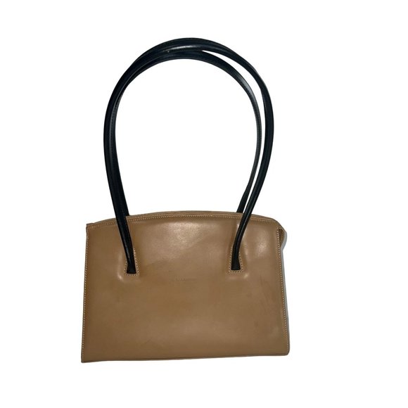 Vintage C. Valentino Handbag - Tan Leather With Black Shoulder Straps