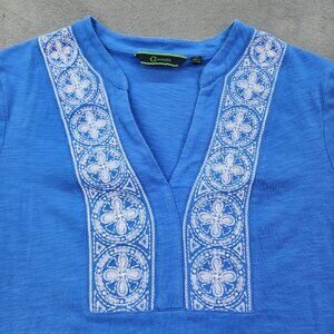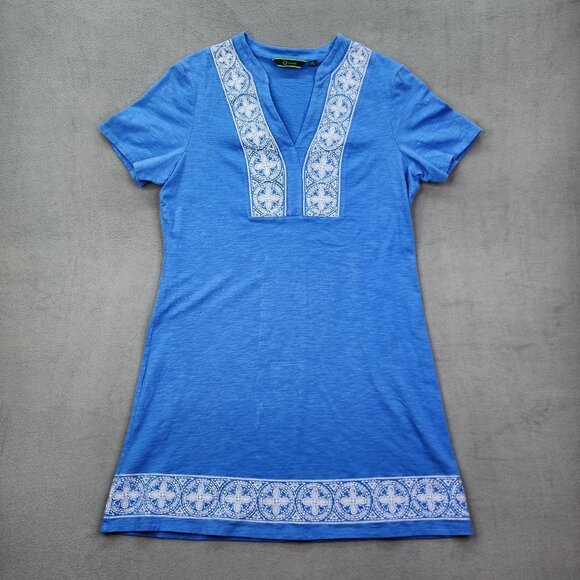 Vintage C Wonder Midi T Shirt Dress Women's Medium Blue V Neck Embroidered
