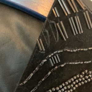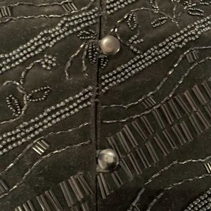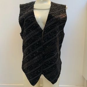 Vintage CACHE Black Beaded Evening Tuxedo Vest Women's Sleeveless sz L 80s Adjus