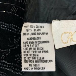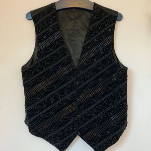 Beautiful Vintage CACHE Tuxedo Evening Vest - Beautifully Beaded front with 5 button closure, solid back and adjusting back strap. Please refer to measurements listed below. Materials - Cotton, Beading - Lining: Rayon