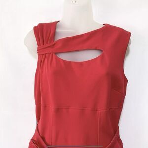 Vintage CACHE Red Sleeveless Cut Out Sheath Dress Size 10 Belted Made In USA