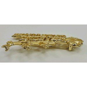 Vintage CAJC Christmas Santa Sleigh and Reindeers Gold Tone Brooch Pin