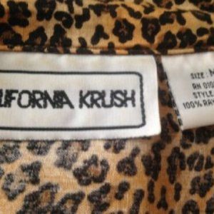 Vintage * CALIFORNIA CRUSH button-down TUNIC slvls rayon SHIRT* ANIMAL PRINT * M