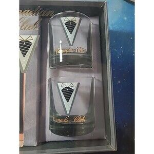 Vintage CANADIAN CLUB Whiskey Rocks Tumbler Low Ball Tuxedo Glasses Set of 2.