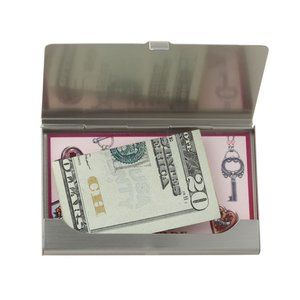 Brushed Steel Case measuring approx 3.75" tall by 2.25" wide by .25" deep