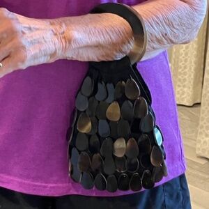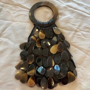 Vintage CAROLE HOLDING Unique Tortoise Shell Bead Mini Bracelet Bag OS