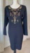 In like new condition with no flaws or signs of wear size SP vintage Carole Little long sleeve sweater dress. Features an embellished beaded crew neckline that extends to the torso, a hand washable wool blend material, and a pull on style. Classic look and silhouette that never goes out of style.