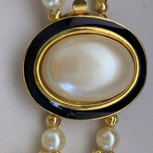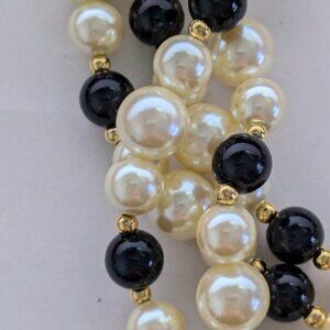 Vintage CAROLEE Faux Ivory, Black Pearl Four Strand Cabochon Box Clasp Necklace