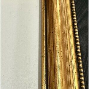 This was an estate sale find and appears to be new old stock. Im guessing this person was framer. It has an antique gold or bronze finish a beaded detail around the edge.
