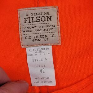 Vintage CC FILSON Shirt Mens 42 Hunting Shirt Blaze Orange Shoulder Cover Snap