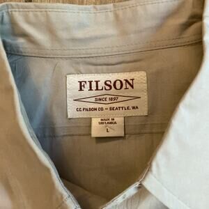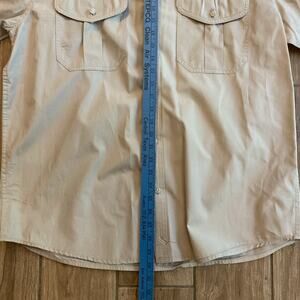 Vintage CC Filson Garment Button Up Khaki Short Sleeve 100% Cotton Shirt Size L