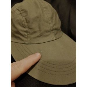 This hat is in pretty good condition. One minor dot on top of bill. The fabric is a thin lightweight material with air vent holes. Feel free to message with any questions.