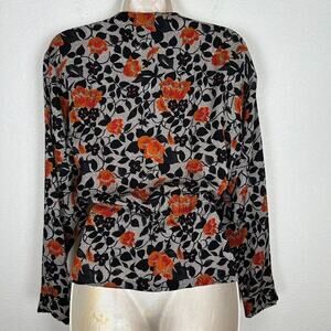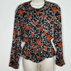 Gently used vintage silk button-up blouse with adjustable drawstring waist, hidden buttons and rolled sleeve cuffs. 100% silk blouse. No rips, tears or stains. Please look at the photos as they are part of the description.