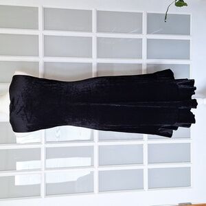 This stunning piece effortlessly combines the allure of velvet with the timeless charm of 90s fashion. Pullover style ensures ease and comfort, and the sleeveless design and flounce hem adds a touch of playful elegance, making it perfect for any special occasion. Dress is not lined, and the material is a little thin.