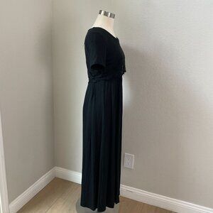 Vintage CDC Womens 4 Black Maxi Dress Short Sleeve Embroidered Bodice Babydoll