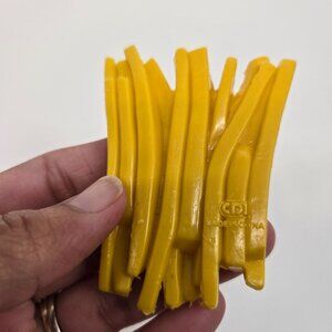 This lot of 4 vintage pieces by CDI is a lot of pretend play food, including: 1 cherry pie, 1 pile of french fries, 1 egg, and 1 small lettuce.