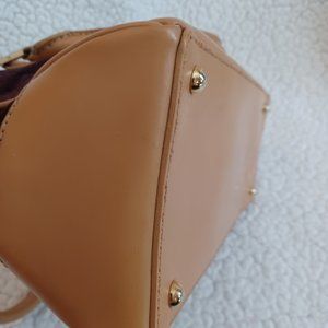 Leather has been touched up with leather colored conditioner - reflected on price. Please see up-close photos for further inspection. Overall, color is matched to original which can be seen in the tag inside.