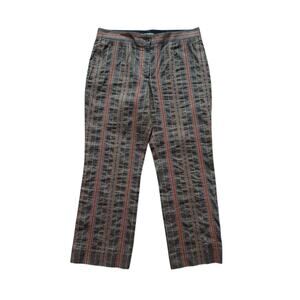 Vintage CELINE Linen Blend Cropped Pants Size 38 Striped Brown Rust Gold France