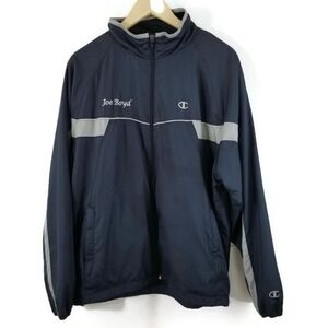 Vintage Men's CHAMPION Sweatpant and Wind-breaker/sweater set in blue with gray accent. The jacket has the name "Joe Boyd", full-zip, pockets. Elastic waist pants.