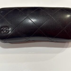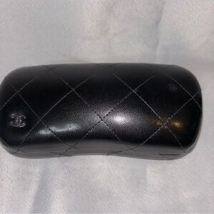 Vintage CHANEL Black Quilted Hard Case Clamshell CC logo Sunglass Case