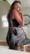 It’s slouchy, not stiff. Approx 16x12 and fits small laptops, good shoulder bag. The straps are removable so you could get a cross body.