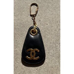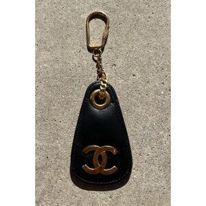 This vintage CHANEL CC black and gold coin keychain ring is a rare and stylish accessory for women. Made of leather and metal with gold accents, this keychain features the iconic CHANEL logo and coin design. It exudes luxury and elegance, making it a unique and eye-catching addition to any collection of keychains or charms. Perfect for adding a touch of glamour to your everyday essentials, this vintage piece is a must-have for any fashion-forward individual.