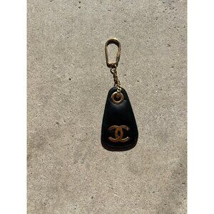 Vintage CHANEL CC Black Gold Coin Key Chain Ring Keychain Charm RARE