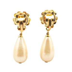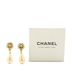Used Vintage CHANEL Camellia Flower Motif Faux Pearl Earrings, Gold Plated, Women's (SKU: GZl1blsf)