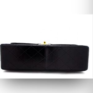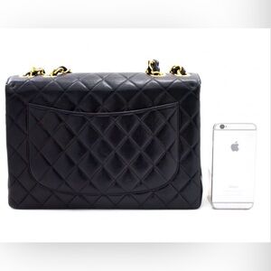 An authentic CHANEL Jumbo 11" Large Chain Shoulder Bag Flap Black made of black Lambskin.